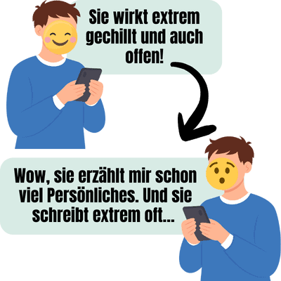 - Schon nach kurzer Zeit teilt sie sehr persönliche Informationen, um möglichst schnell Nähe herzustellen.