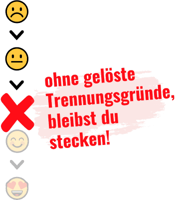 Wenn die Trennungsgründe nicht gelöst sind, dann ist es in der Regel so, dass du irgendwo auf halber Strecke zwischen der neutralen und der positiven Phase stecken bleiben wirst: